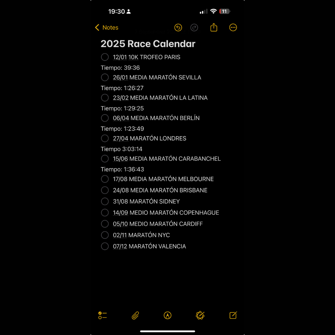 Guardo en notas mis carreras para luego subirlas a Instagram
